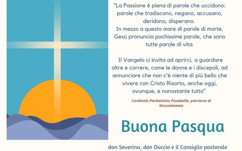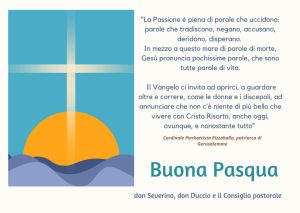 - una riflessione del cardinale Pizzaballa, che accompagna gli auguri di “Buona Pasqua” alla comunità da parte del parroco, di don Duccio e del consigli opastorale